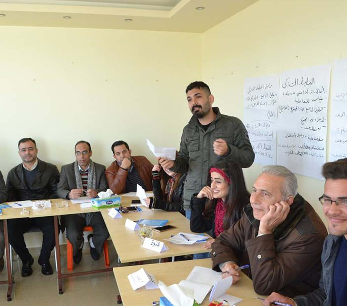 انقسم التدريب في ورشة العمل على مجموعة محاور جاء في مقدمتها حوار حول دور المجالس المحلية في المرحلة القادمة وعلاقتها مع الناس في ظل إعادة الإعمار والمصالحات، وكيف ستكون الإدارة المحلية وسيلة لمشاركة الناس في الحياة السياسية وتحقيق الديمقراطية وتطبيق مبدأ العلمانية.