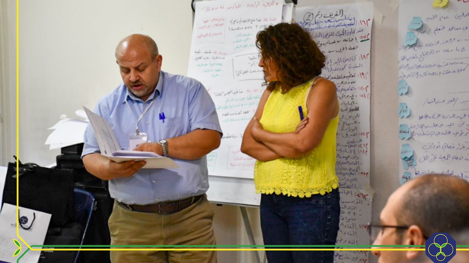 5- استكمال عمل المجموعات على إنتاج أوراق تحليلية تقدم قراءة مدنية لنصوص ستة قوانين مفصلية من خلال المقاطعة بين مواد كل نص قانوني مستهدف ومعايير كل محدد من المحددات المصاغة للوصول إلى الرؤية.