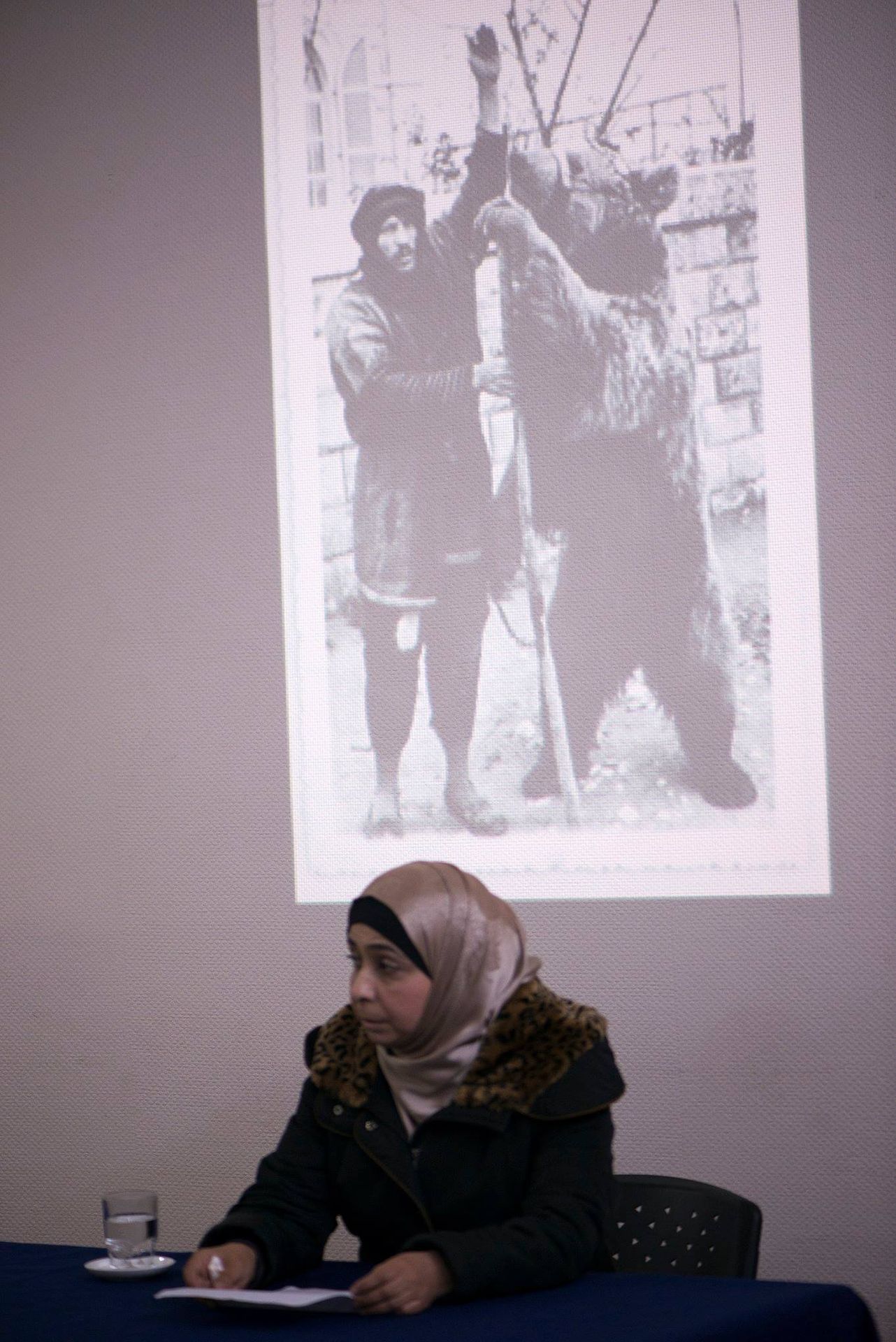أقيمت في حركة البناء الوطني مساء أمس الأربعاء أمسية جديدة من الفعالية الأدبية الشهرية "حكايا الصور". وقُدم في الأمسية ستة حكايا مميزة عن الصورة الملتقطة في ثلاثينات القرن الماضي في محيط مدينة حلب في زمن كان فيه الدب السوري "أو ما يسمى الدب الأوراسي وهو من فصيلة الدب البني" جزءاً من الحياة البرية السورية، ولم يكن مشهد المروَّض الجوّال مع دبه من المشاهد النادرة في القرى والمدن السورية، علماً أن هذا المظهر اختفى منذ ستينات القرن الماضي مترافقاً مع انقراض الدببة من الحياة البرية في منطقتنا.