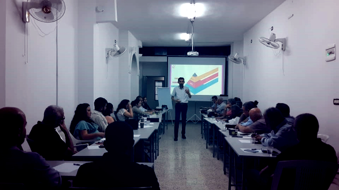 جلسة حوار تفاعلي تم خلالها مناقشة مجموعة من المفاهيم المرتبطة بالهدف العام للمبادرة وخلق مساحة للحوار بين مجموعة من الأطراف المعنيين بعملية التنمية المحلية. وتم خلال نشاط جماعي ضمن اللقاء تحديد مجموعة من المشاكل التي تعاني منها المدينة حسب الأولوية. تلا النشاط تقسيم الحضور إلى مجموعات تعمل كل مجموعة على اقتراح رؤية تنموية خاصة بمدينة السلمية بعد 10 سنوات ووضع مجموعة من الأهداف الاستراتيجية وتحديد العراقيل والتحديات التي تحول دون تنفيذ هذه الأهداف وطرح الحلول المناسبة لها. |