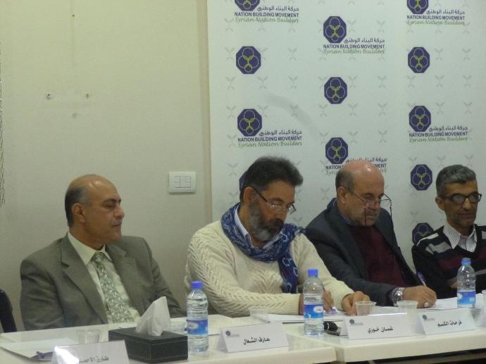 أطلقت حركة البناء الوطني جلستها الحوارية الثانية في مدينة دمشق ضمن مشروع "منصات الحوار السورية"، وذلك بعنوان "بحث الخيارات الاستراتيجية للسوريين" بهدف وضع منهجية جديدة للعمل السياسي والاجتماعي ليكون قائماً على الخطط والبرامج وتجميع السوريين على أساس المواقف منها وتحفيزهم للمشاركة في صياغة مستقبلهم.