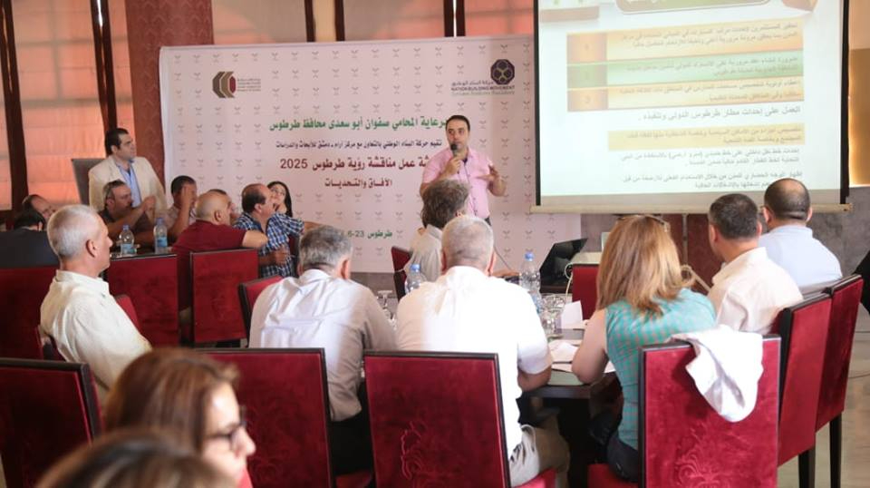 في مبادرة نادرة لمشاركة سلطة تنفيذية للمجتمع المحلي في التخطيط والتفكير، برعاية محافظة طرطوس أقامت حركة البناء الوطني بالتعاون مع مركز آرام دمشق للأبحاث والدراسات في طرطوس يوم السبت 23 حزيران 2018 جلسة نقاش تحت عنوان (مناقشة رؤية طرطوس 2025.. الآفاق والتحديات).